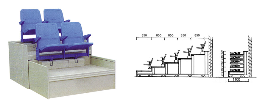 15532879333层 宽: 850mm层 高: 310mm踏板材质: 木板、铁板、铝板座椅类型: 带扶手后置翻板座椅座椅间距: 500mm驱动方式: 手动或电动翻转方式: 手动或自动翻转